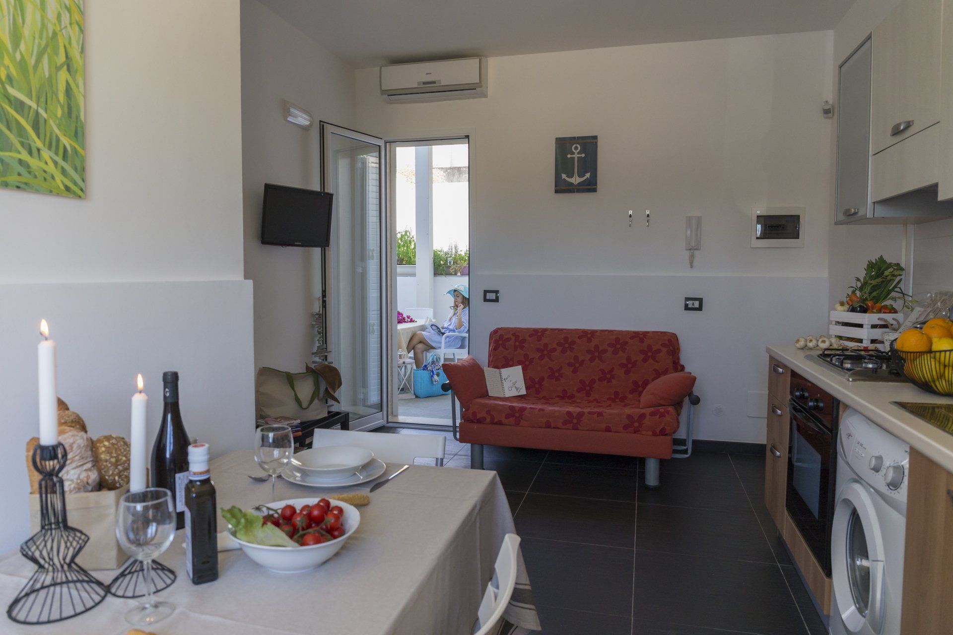 Al primo piano del nostro stabile di Cannamara a Donnalucata è la sistemazione ideale sia per chi viaggia da solo sia per le famiglie. Può ospitare fino a un massimo di 5 ospiti. L’appartamento è composto da una camera da letto matrimoniale con ventilatore al soffitto, camera doppia con lettini singoli, muniti di biancheria da letto e una cucina soggiorno con divano letto ad una piazza e mezza (l 120cm).Una veranda interna sul cavedio è attrezzata con tavolo e sedie per i vostri momenti di relax e convivialità. La cucina è attrezzata di tutte le stoviglie necessarie, compreso il frigorifero e la biancheria da cucina. L’appartamento possiede un bagno dotato di tutti i sanitari, compreso il box doccia e la biancheria da bagno.
