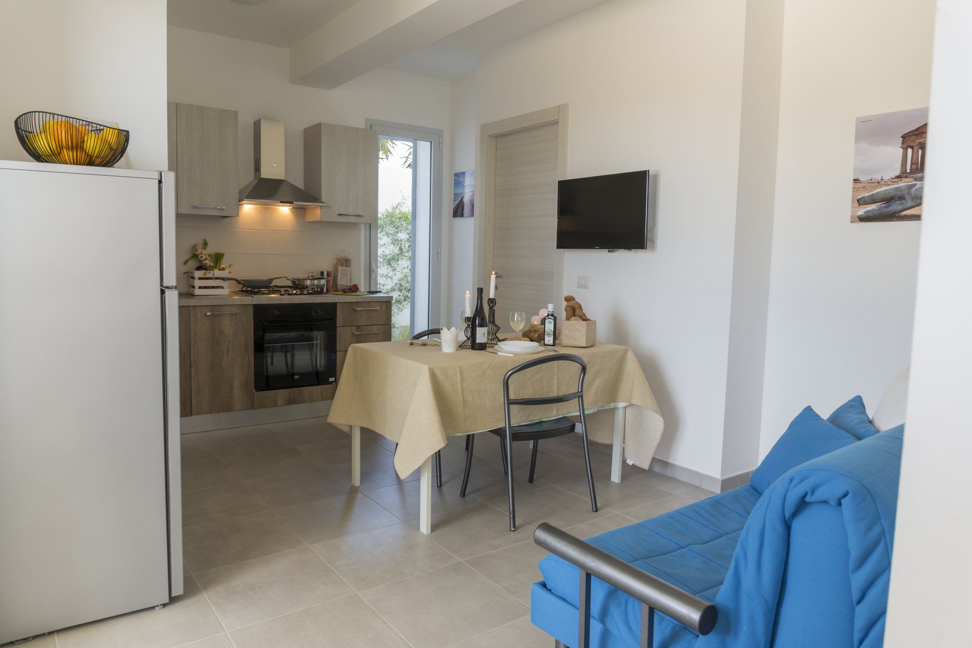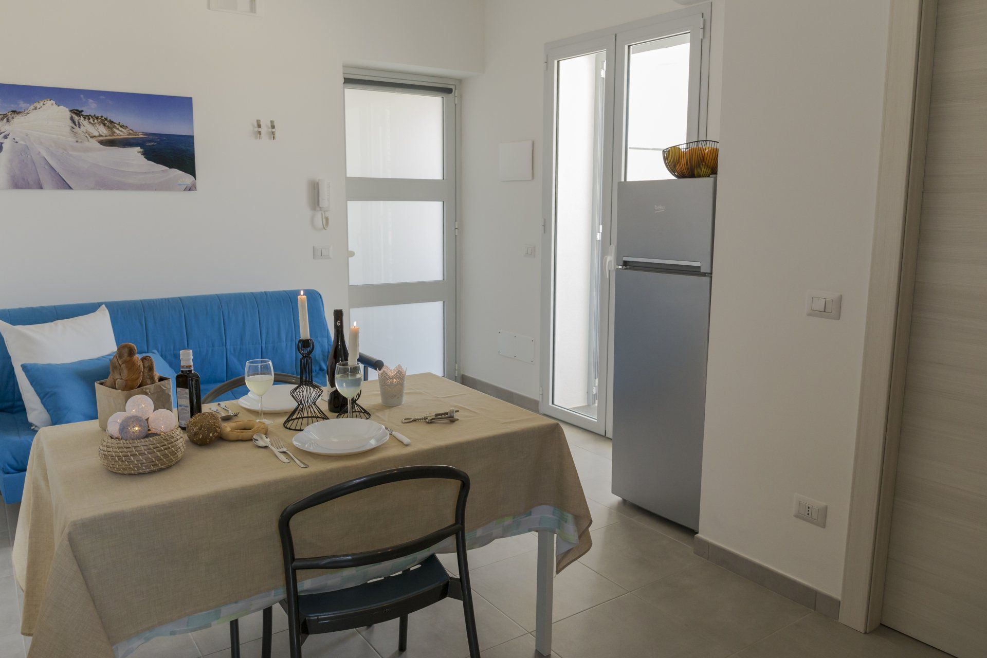 La cucina è attrezzata di tutte le stoviglie necessarie, compreso il frigorifero e la biancheria da cucina. Gli appartamenti possiedono un bagno dotato di tutti i sanitari, compreso il box doccia e la biancheria da bagno.