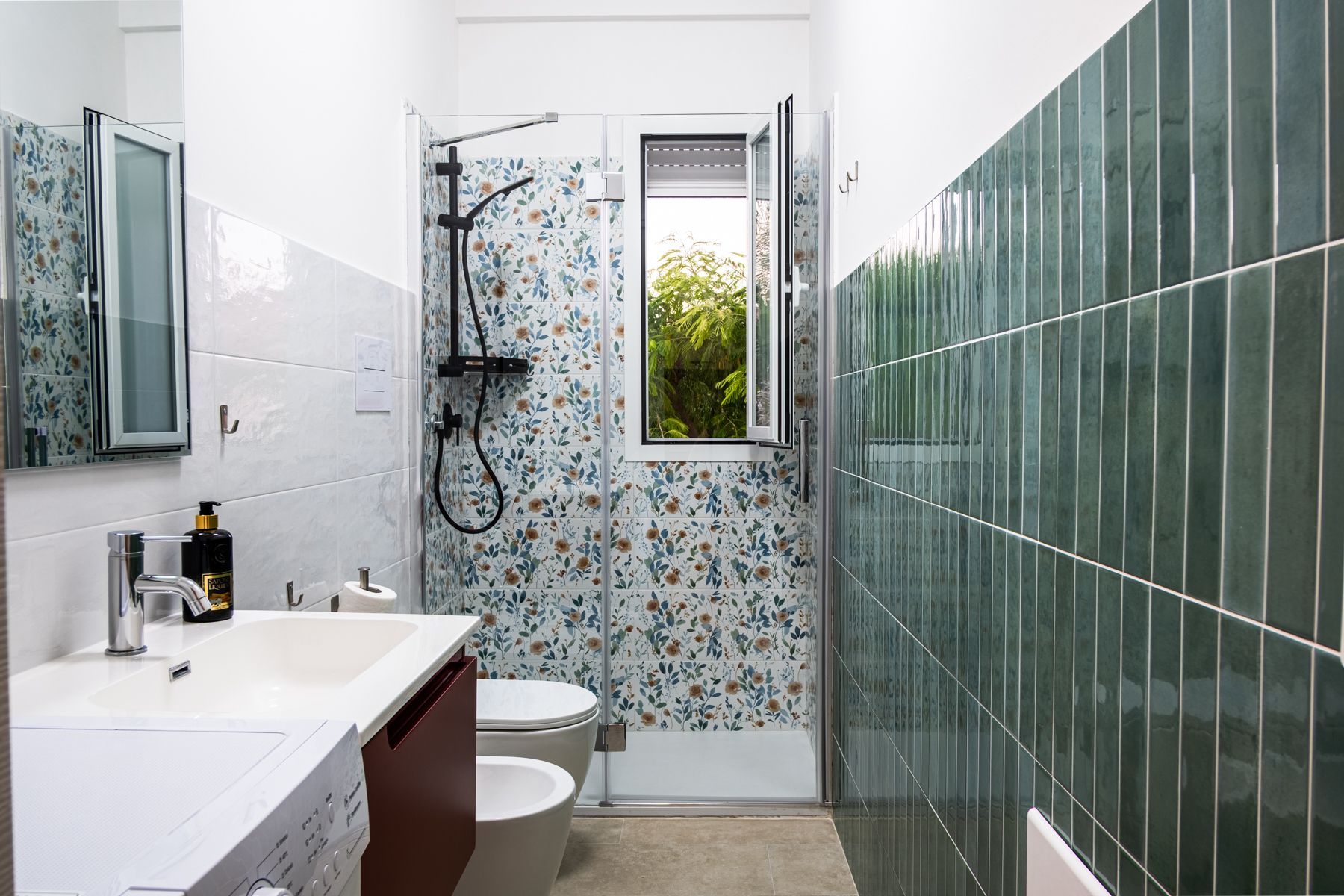 L’appartamento è climatizzato, con un’unità di aria condizionata posizionata nella zona soggiorno-cucina che serve efficacemente tutti gli ambienti.