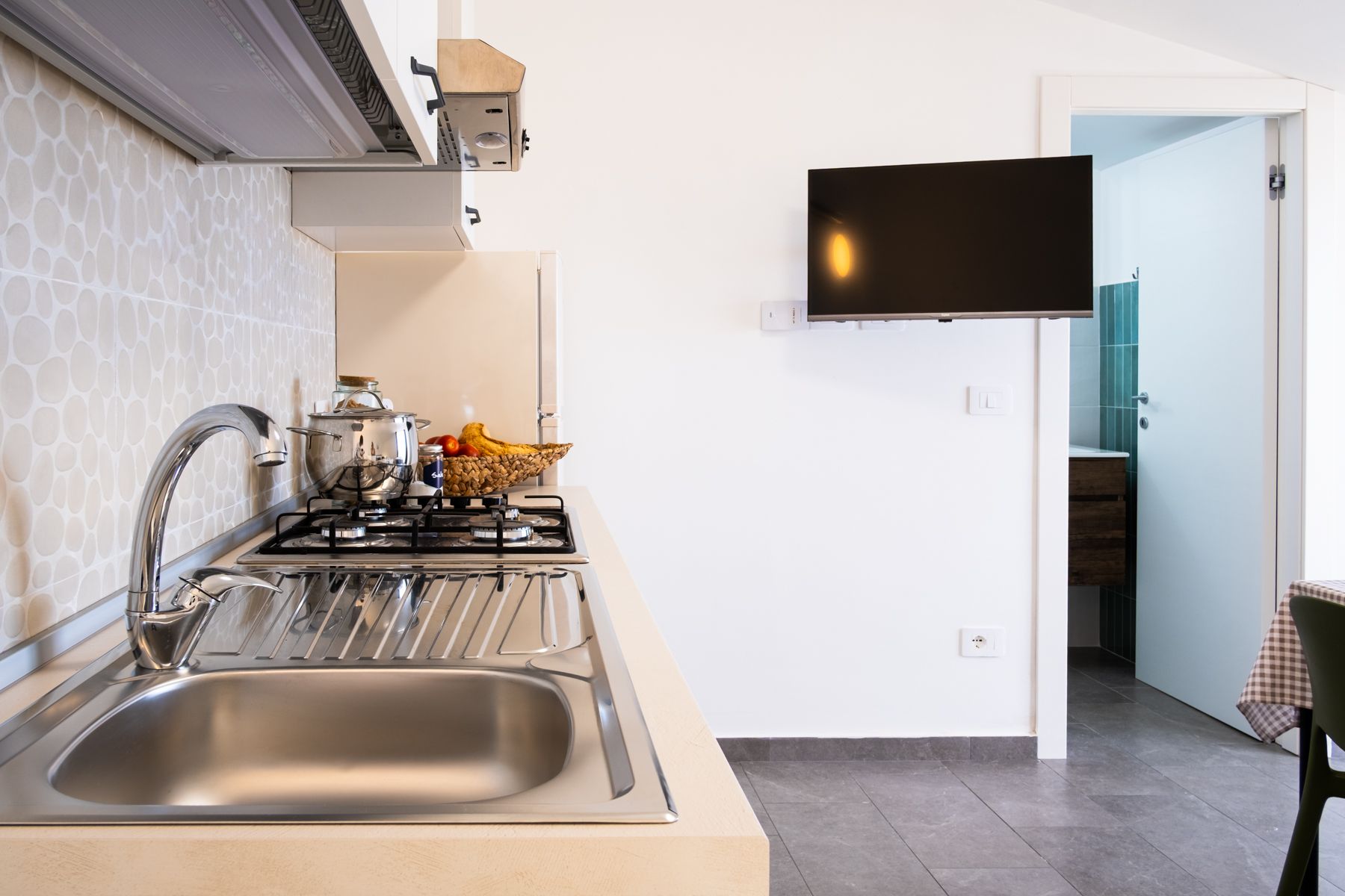 zona soggiorno-cucina che serve efficacemente tutti gli ambienti.