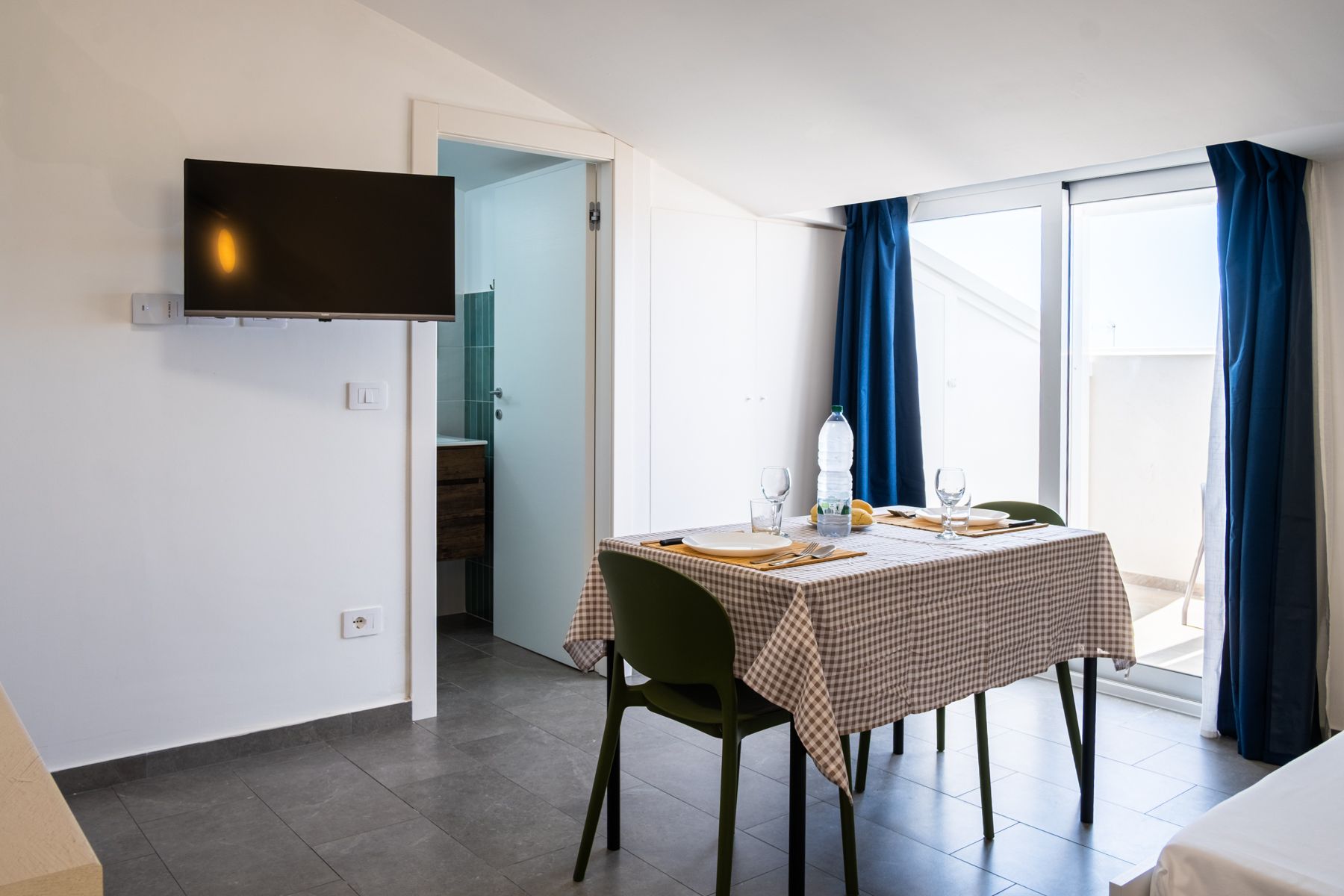 - Ambiente unico con letto matrimoniale, cucina e soggiorno;