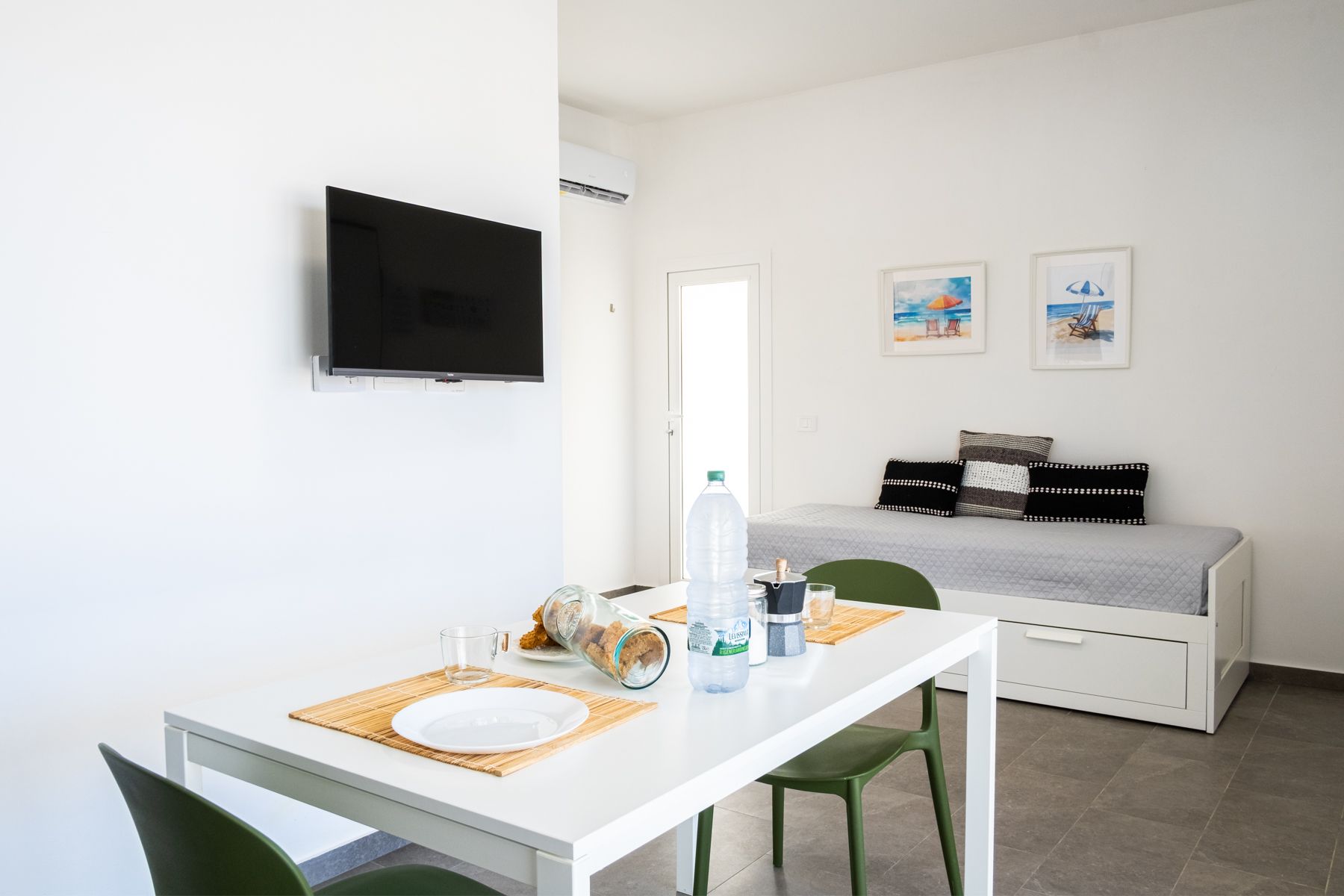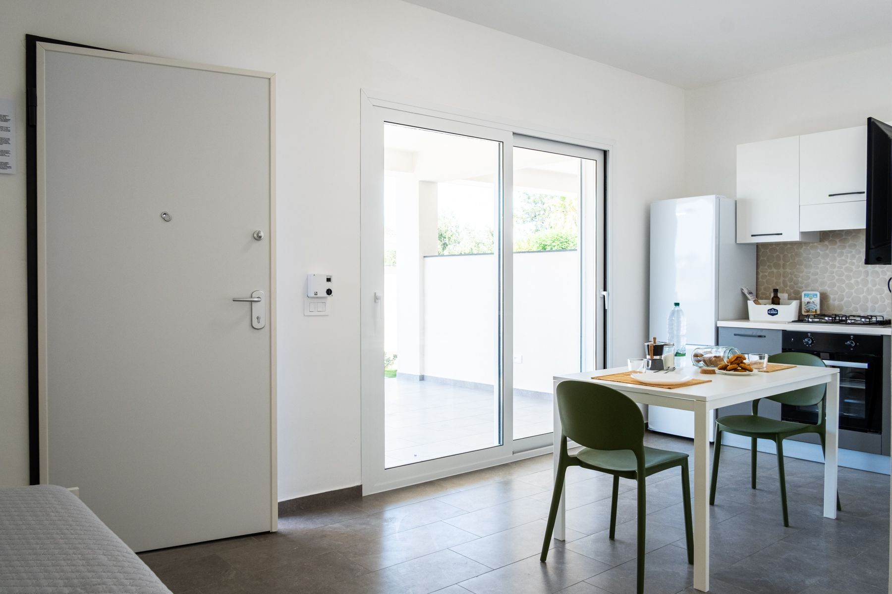 - Cucina-soggiorno con divano letto matrimoniale;
