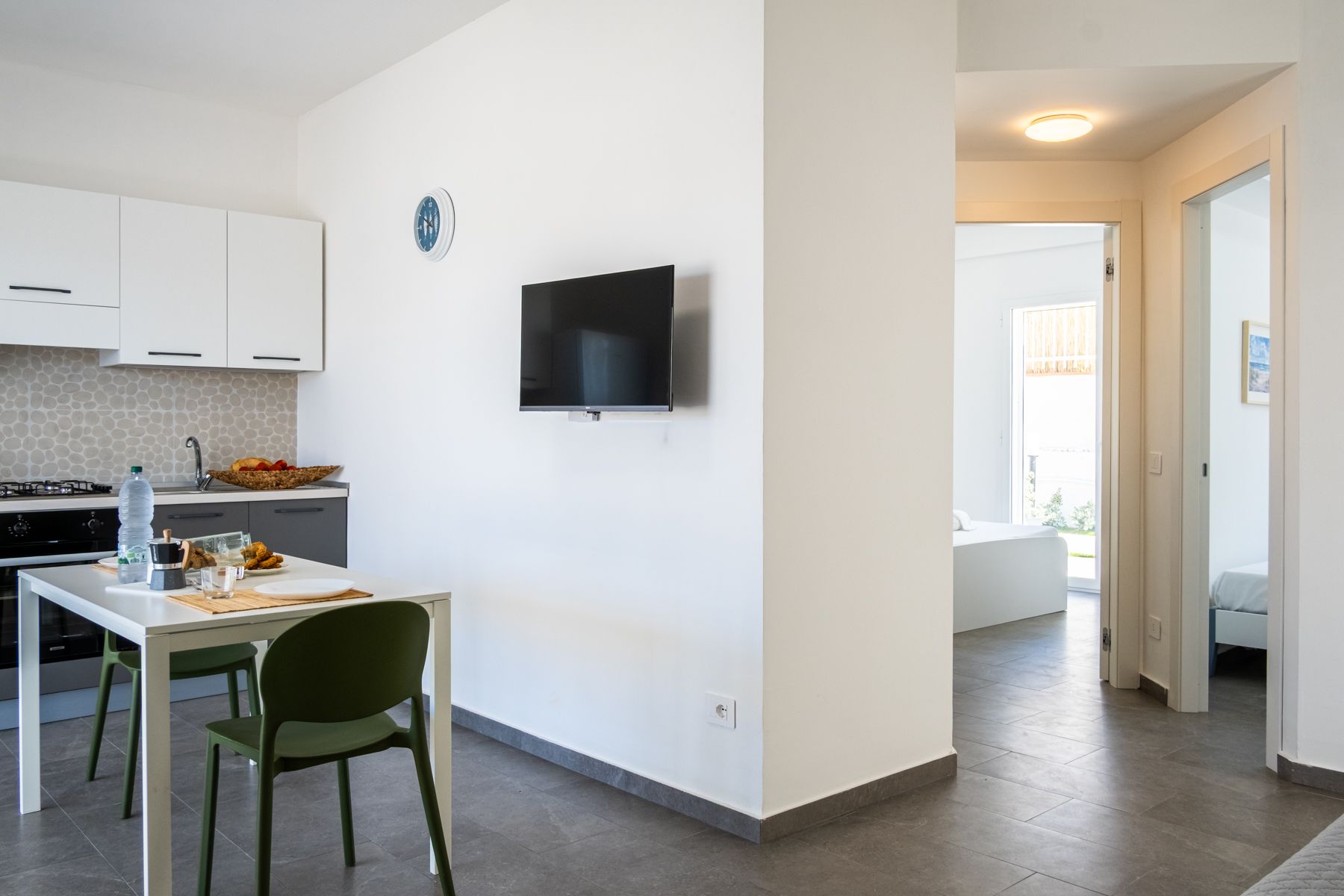 Al piano terra del Residence Casuzze, questi trilocali sono la soluzione ideale per famiglie o gruppi da 2 a 6 persone che desiderano una vacanza comoda e rilassante. L’appartamento dispone di una camera matrimoniale, una camera doppia con letti singoli, un bagno moderno e una cucina-soggiorno con divano letto matrimoniale, perfetta per momenti di convivialità e relax. La terrazza attrezzata con tavolo e sedie permette di godersi colazioni al sole, cene all’aperto o semplici momenti di tranquillità. Ogni unità è dotata di posto auto riservato, per muoversi in totale comodità. L’appartamento è climatizzato, con un’unità di aria condizionata posizionata nella zona soggiorno-cucina che serve efficacemente tutti gli ambienti.